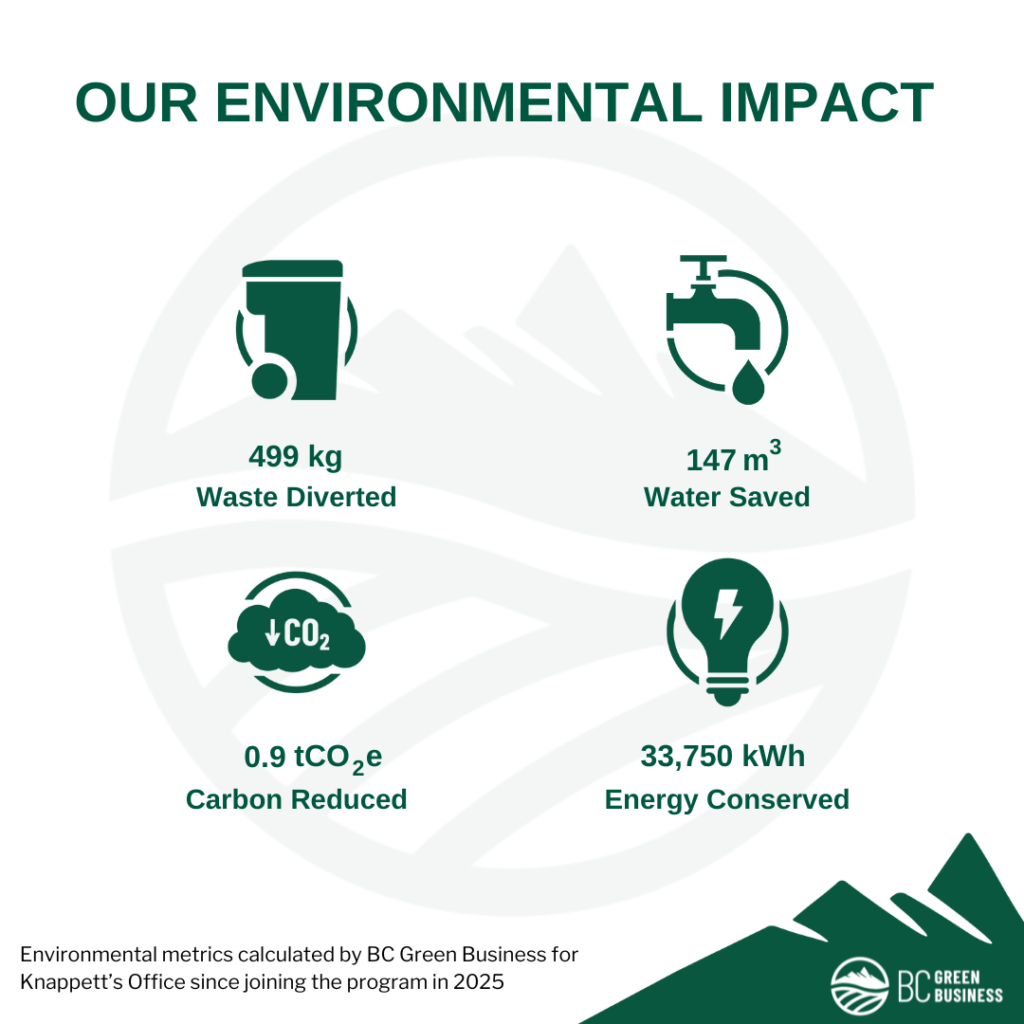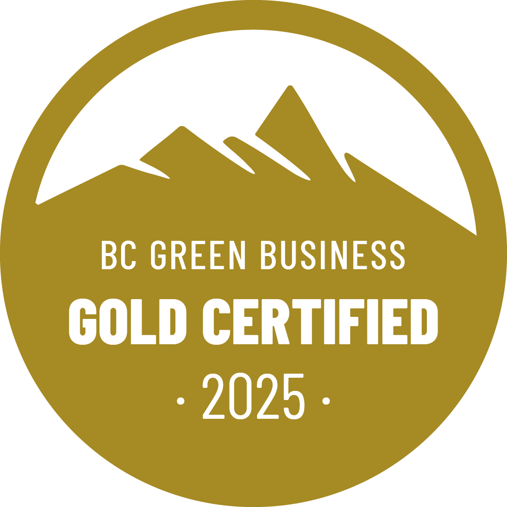 BC Green Business Certification Achieved 2025 demonstrating our commitment to operating a Green Business. This certification program supports businesses looking for practical and affordable ways to reduce their environmental impact and contribute to their local communities. This certification program supports businesses looking for practical and affordable ways to reduce their environmental impact and contribute to their local communities